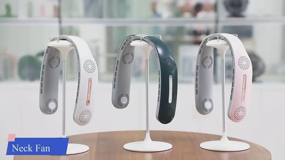 1. The unique design of the portable neck fan is inspired by earphones. It only needs to be hung around the neck to free your hands, and it looks so cool & fancy. With a decentralized annular air outlet, you can feel the cool breeze in any direction, perfectly to ease all the sultry heat.